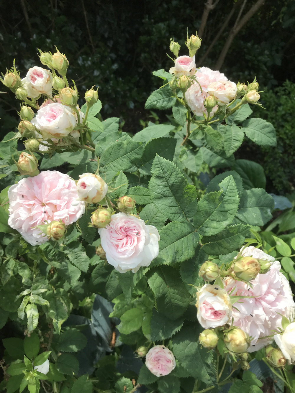They also had The Albrighton rambler and I now think my mystery climber is not Albrighton although I am quite confused because many details of their plant were different than most of the photos available online (lots of thorns close to the flowers, for example). Maybe because it's young it's not a representative plant.