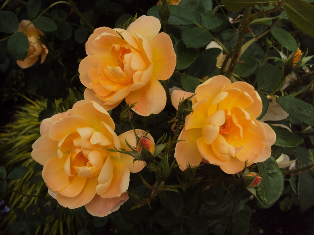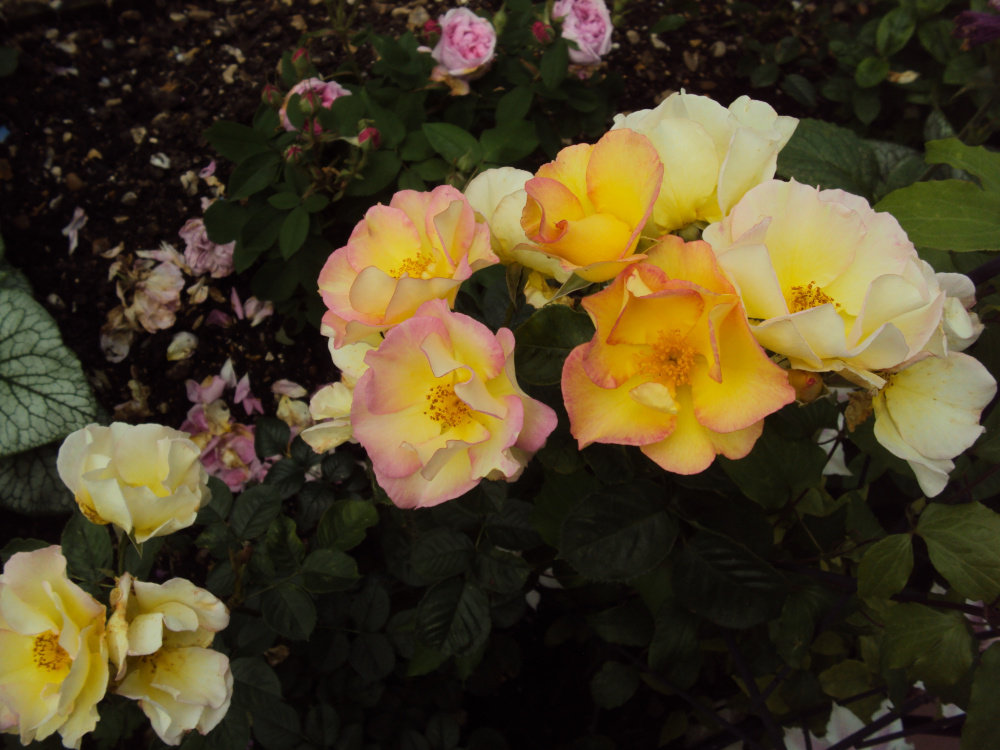 What are your favourite roses which would be a bit smaller, either apricot or yellow/pink mix or light orange, healthy, weather resistant (rain), tolerant of partial shade and with an informal or wild look?