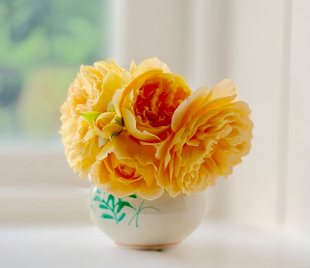‘Crown Princess Margareta’, this little cluster was out of sight so decided to cut it for indoors: