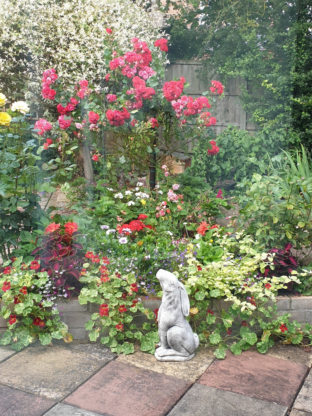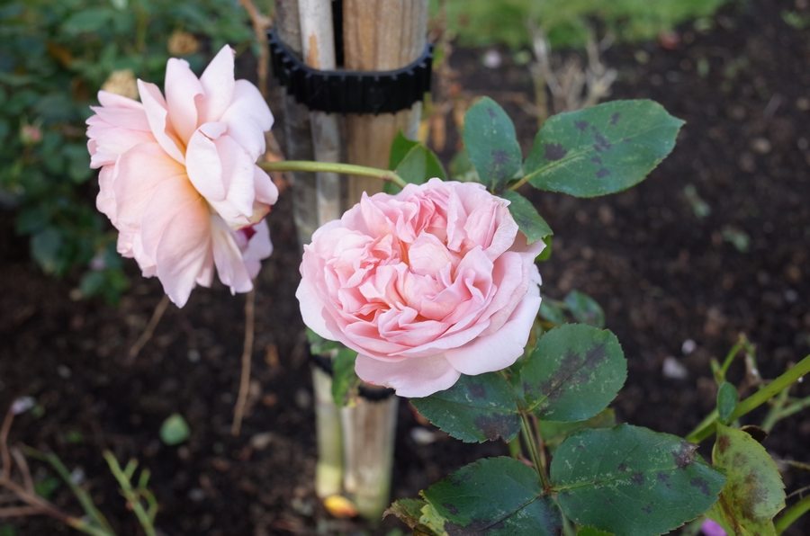 Hubby managed to save my standard Rood rose, by adding large stake. I made him paint it black as it stuck out like a sore thumb at first, but it's working. Good job as its blowing a gale here this morning. Its looks a bit battered but the autumn trim will hopefully sort that out.