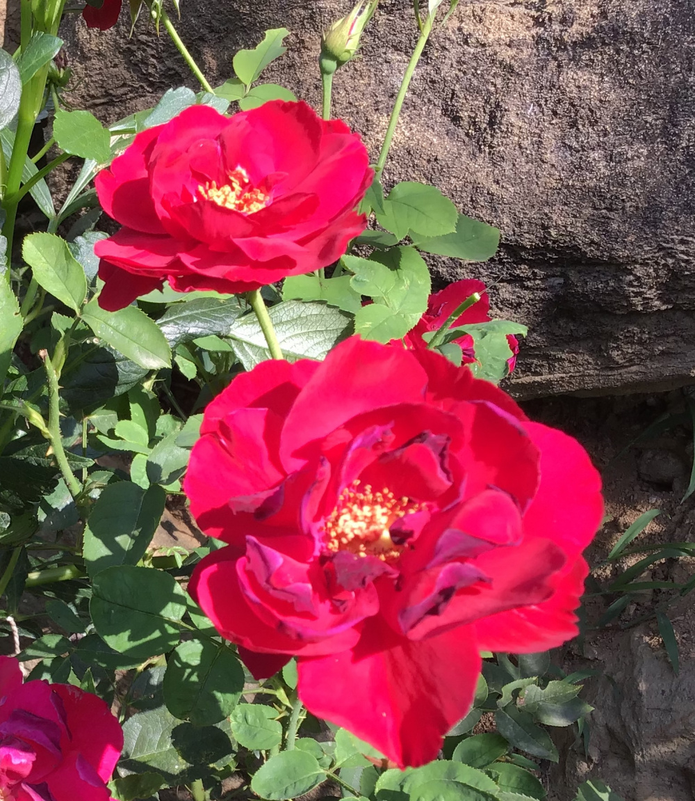 After a bit of cooler weather, the new flushes on my red roses have surprised me by being, well, almost red! But they are not conforming to type. So, which is which?