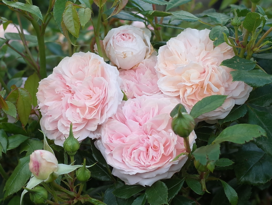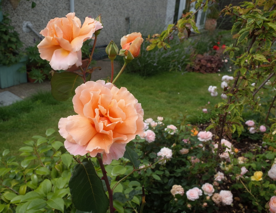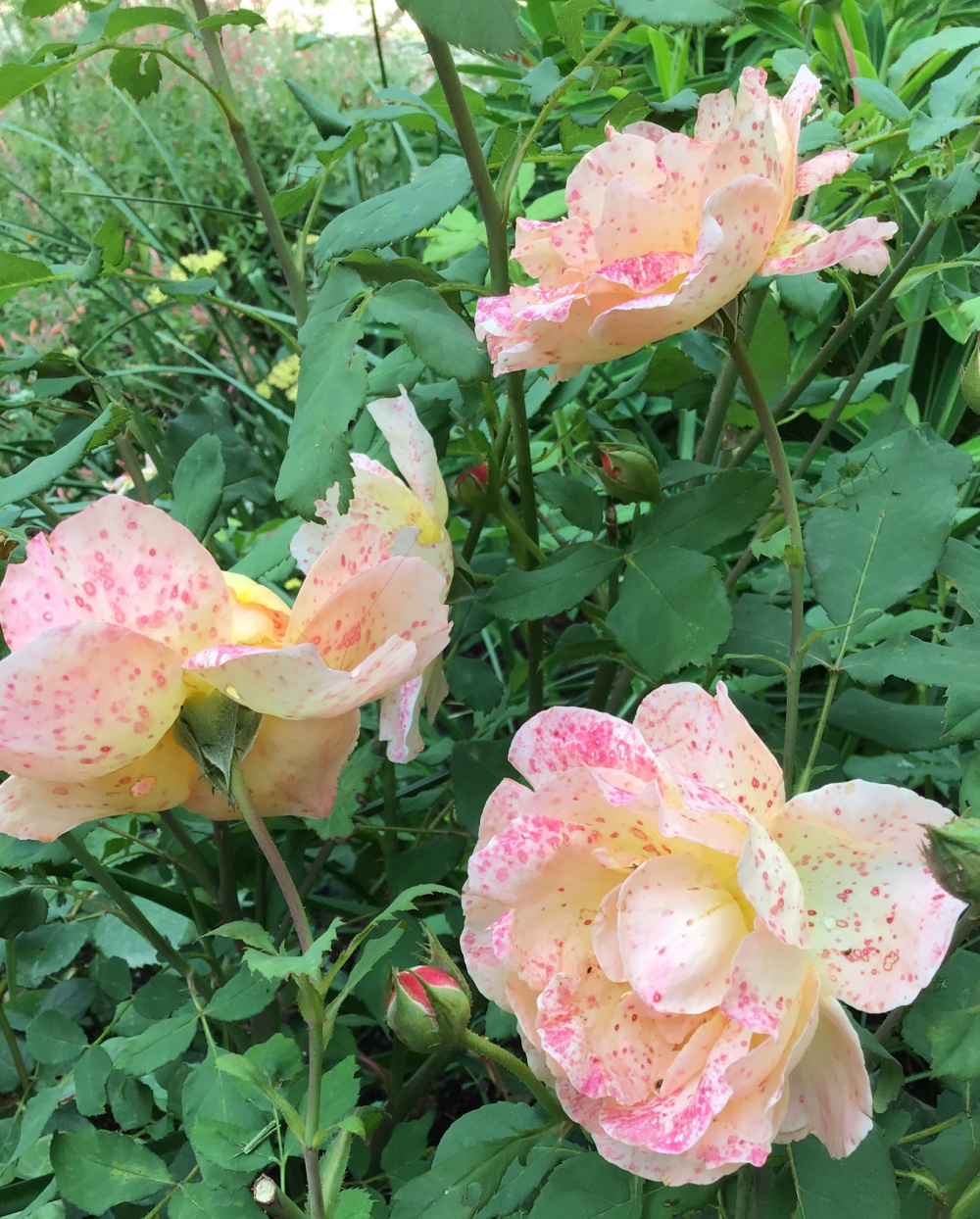 And a rose I want to highlight - Joie de Vivre. An absolutely carefree rose, free-flowering, healthy, compact, easy to grow. The full bush is also visible in the third photo background and in the first photo under that Just Joey cane.
