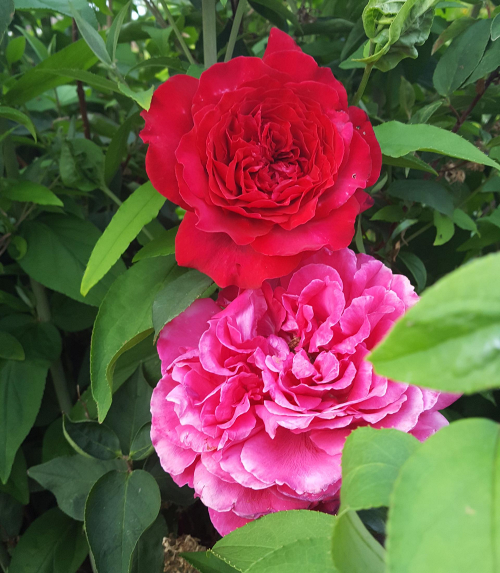 After a bit of cooler weather, the new flushes on my red roses have surprised me by being, well, almost red! But they are not conforming to type. So, which is which?