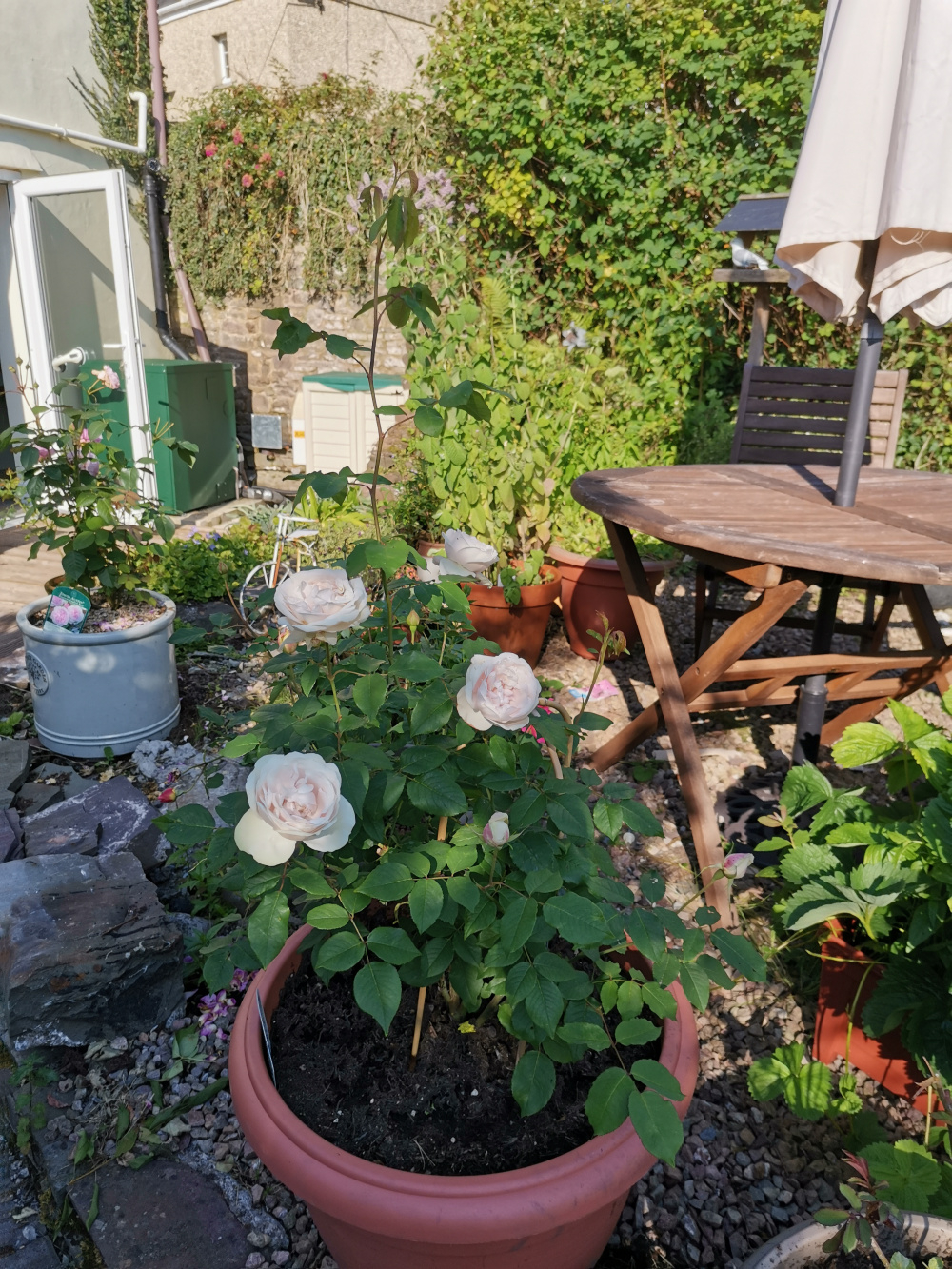 ...beautiful roses @Ffoxglove … I've held off on Ebb Tide for some time, but I do like your Ali Baba... I keep hearing good things about this rose.. and all nicely potted up there...