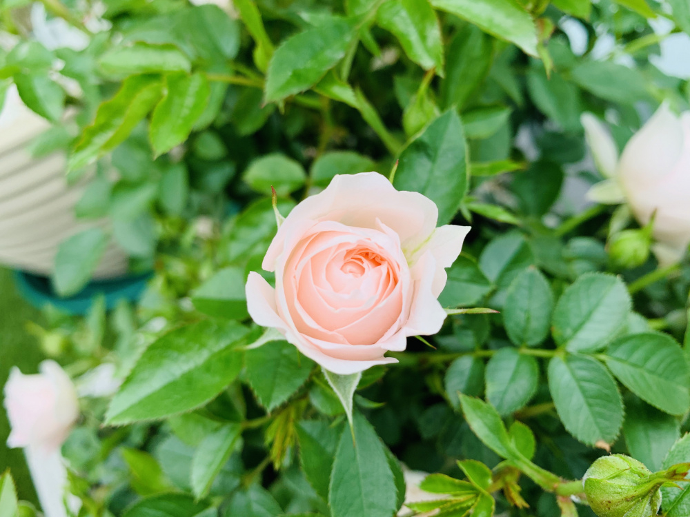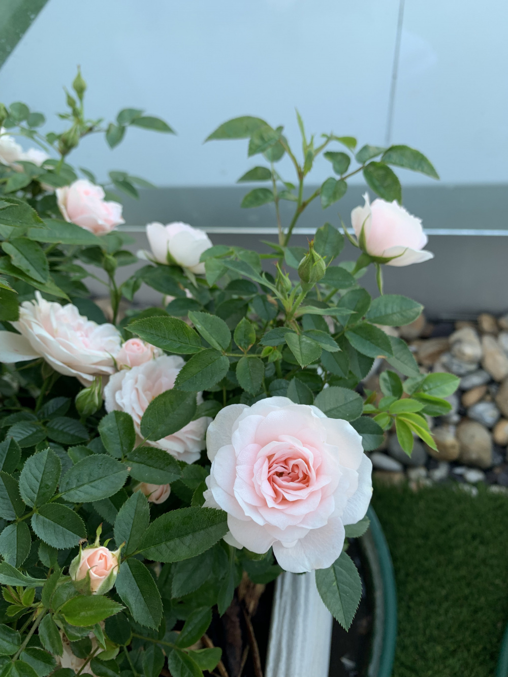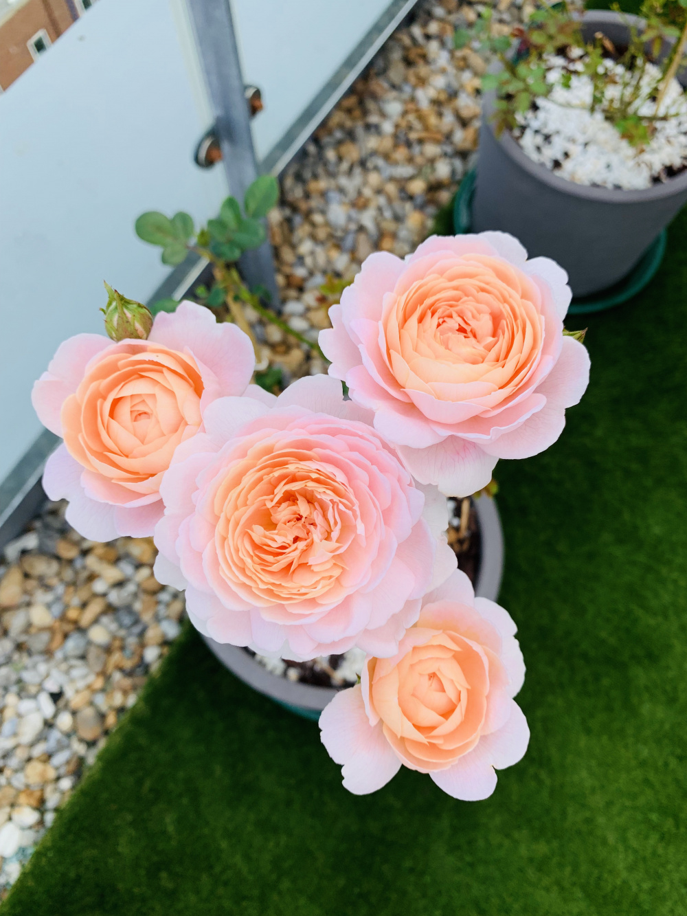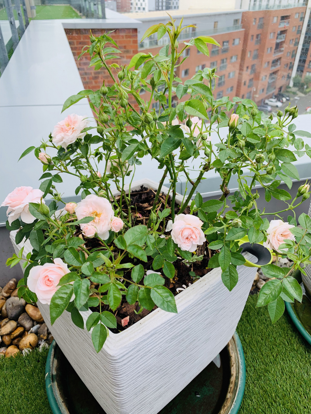 In order: Claire Austin, The Poet’s Wife, Queen of Sweden, and lastly a patio rose that I don’t know the name of as I threw away the tag. It has an attractive pastel pink colour which fades to pure white as it ages. Any ideas?