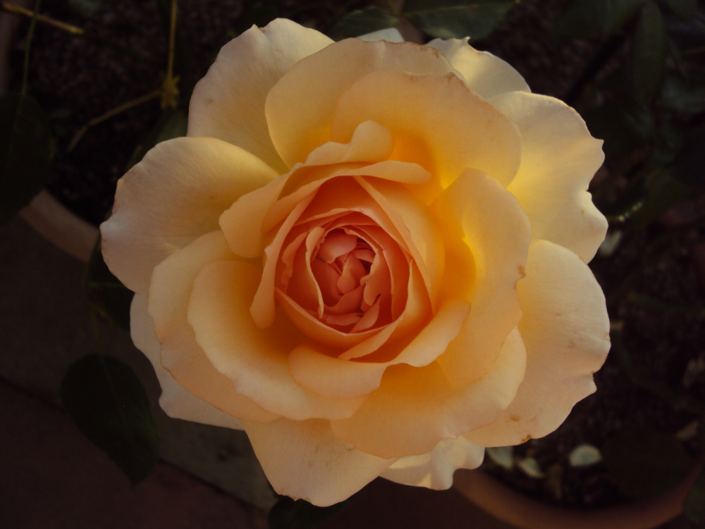 ...it doesn't look much right now, only one bloom as I moved it to this pot earlier as it wasn't happy where I had it... but it's full of buds, and as you can see completely healthy - no sprays... it's also thornless which is such a welcome bonus... it will get much taller than this.. and to top it all, a sweet scent to go with it... not overly strong, but enough...
