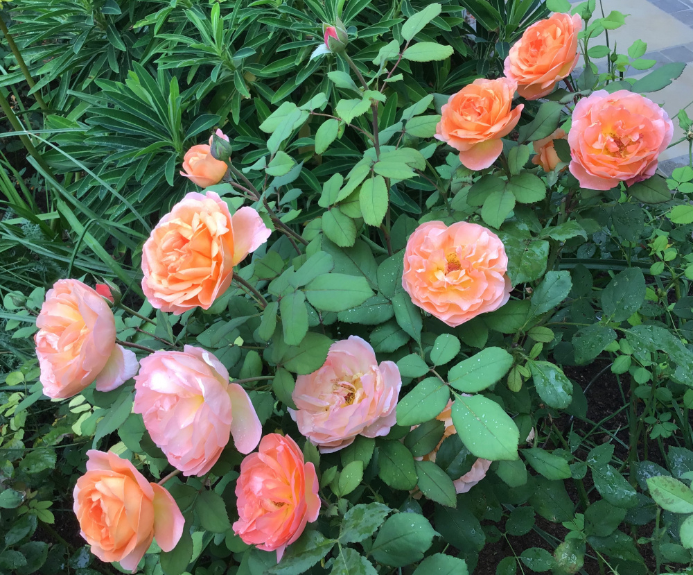 1. Julia Child (aka Absolutely Fabulous) - new this year, constantly smothered in blooms, barely paused for breath, healthy, lush foliage, shrugs off heat and rain, no blackspot until recently, just a tiny amount on lower leaves:
