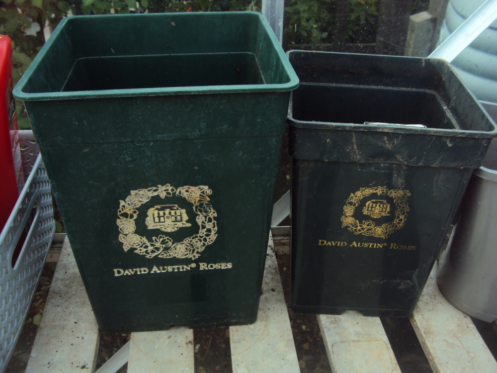 ..this big pot on the left is what DA use for their big climbing roses and probably Standards.. I think it's 10 litre and is able to take a rose right through almost the whole season... the pot on the right is the normal 6 litre..