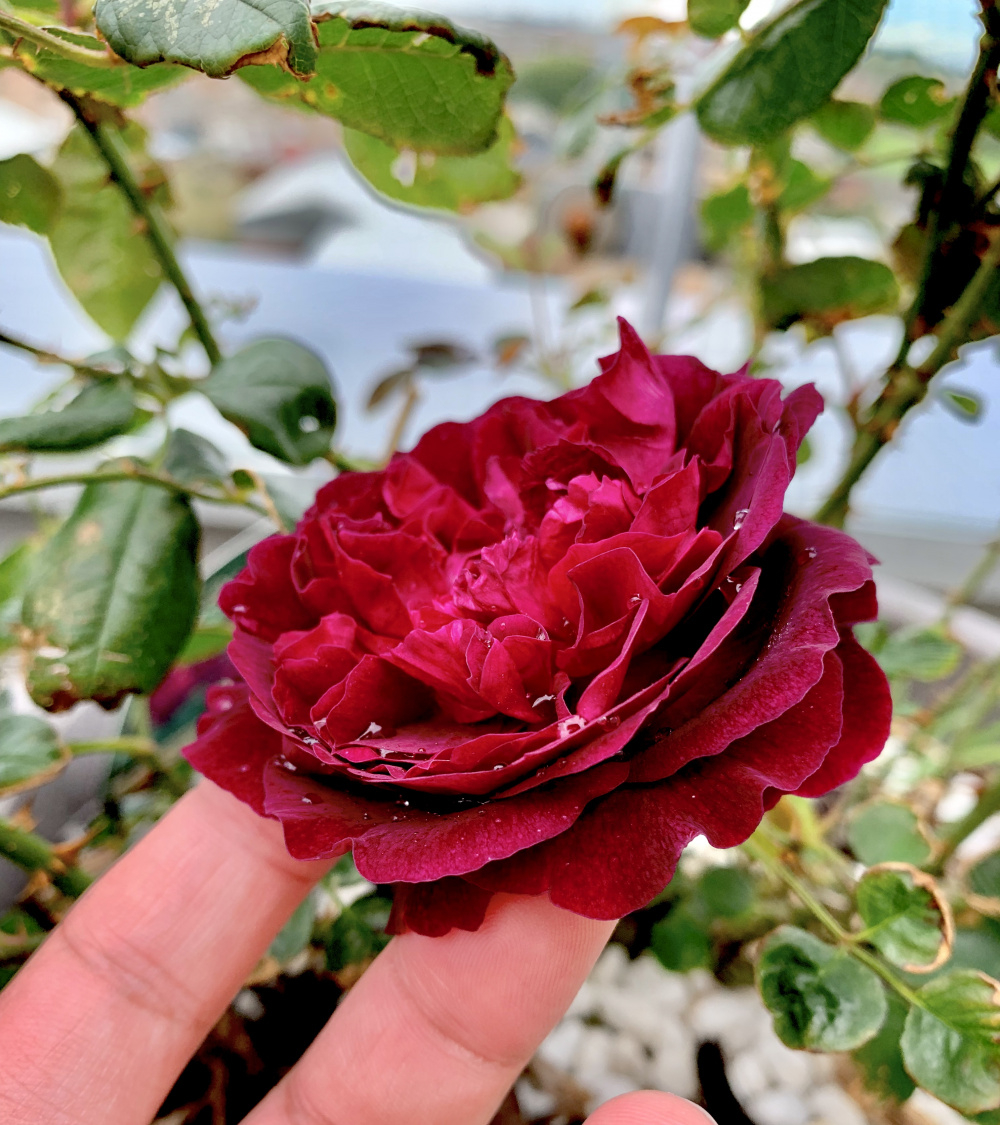 Munstead Wood has finally bloomed for the first time since I transplanted it a month ago. The fragrance and its unique dark red shade is most exotic