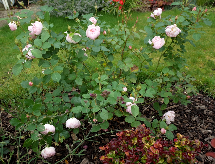 Scarborough Fair looks lovely right now. It has some blackspot but keeps its leaves.