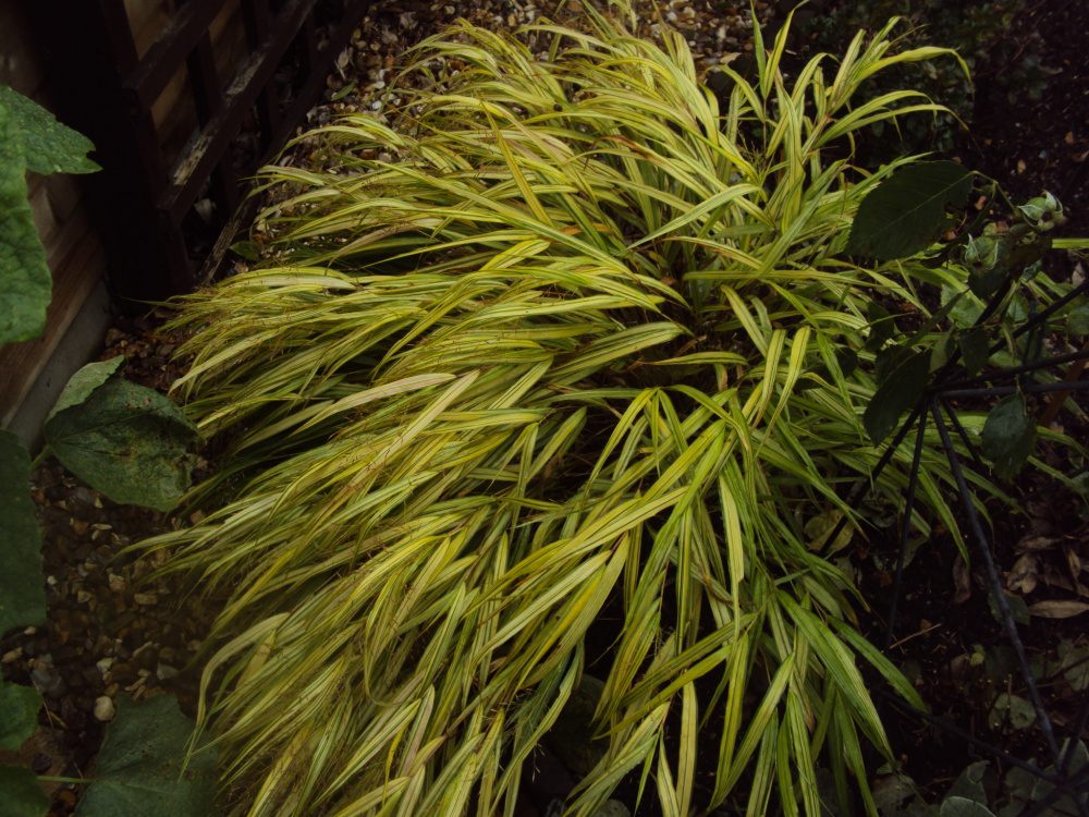 Hakonechloa macra 'Aureola'... I did not get many flowers this year, but brightens up a shady corner...