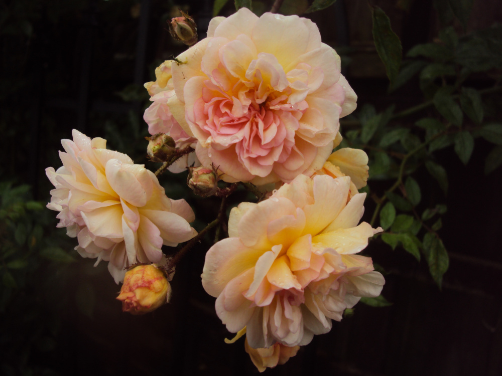 ...I don't know Super Trouper so I cannot help you with that one, hope someone else can advise... but here are some late blooms on Austins from my neck of the woods... pouring with rain here, as it has been for days.... 'The Ancient Mariner'.... 'Munstead Wood'... 'Ghislaine de Feligonde'... rambler 'Lady of Shalott'... not a single blemish on this rose.. 'Kew Gardens'... lots of flowers still to come..