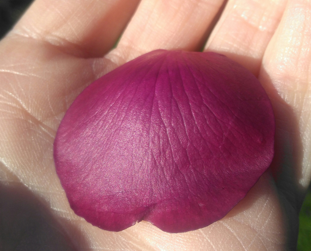 Such a deep colour, and the scent even from this single petal was really strong. Even my OH who usually can't detect rose scents very well thought it smelled lovely.