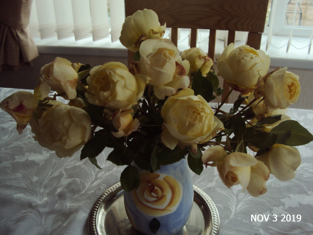 ..all looking good Daniel... lots of healthy foliage there... as is this one 'Vanessa Bell'... one of the most healthiest of David Austin roses... and still in full flush, although not the quality of blooms as in the summer of course... ..I picked these today, about half of what's on the plant, which is about 3.5 x 3.5 feet in a pot.. ...not a blemish in sight..