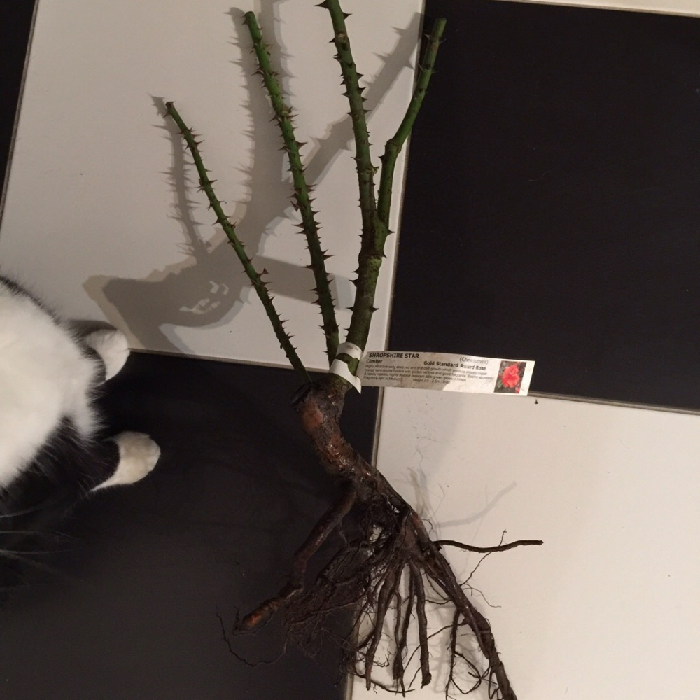 I received 'Midsummer Night's Dream' today from Style roses. They look good, very happy. A bit surprised about the planting advice: The leaftlet says 'Ensure the union (where shoots break out from the main stem) is just above ground level. Previous roses I have planted with the union one or two inches below ground level, pretty much as in the photos shown by @Mr. Vine Eye , and I thought that was the standard advice. I see David Austin also advises to bury the union. So I'm a bit surprised Style roses advise differently.