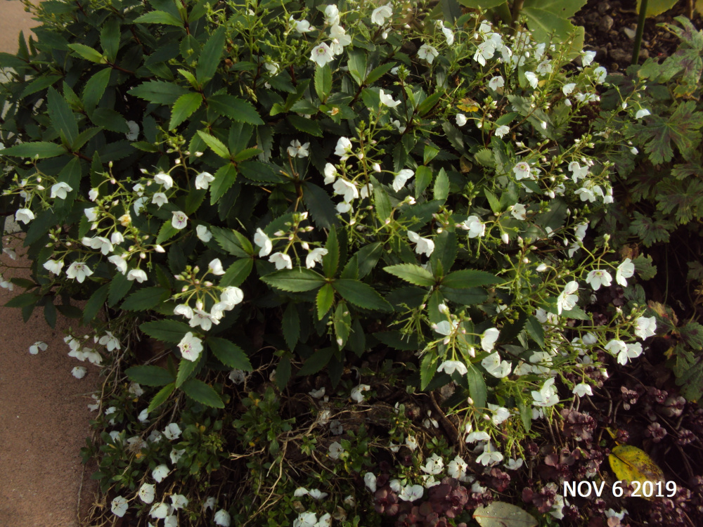 Parahebe 'Avalanche'.. evergreen... flowers for about 8 months of the year...