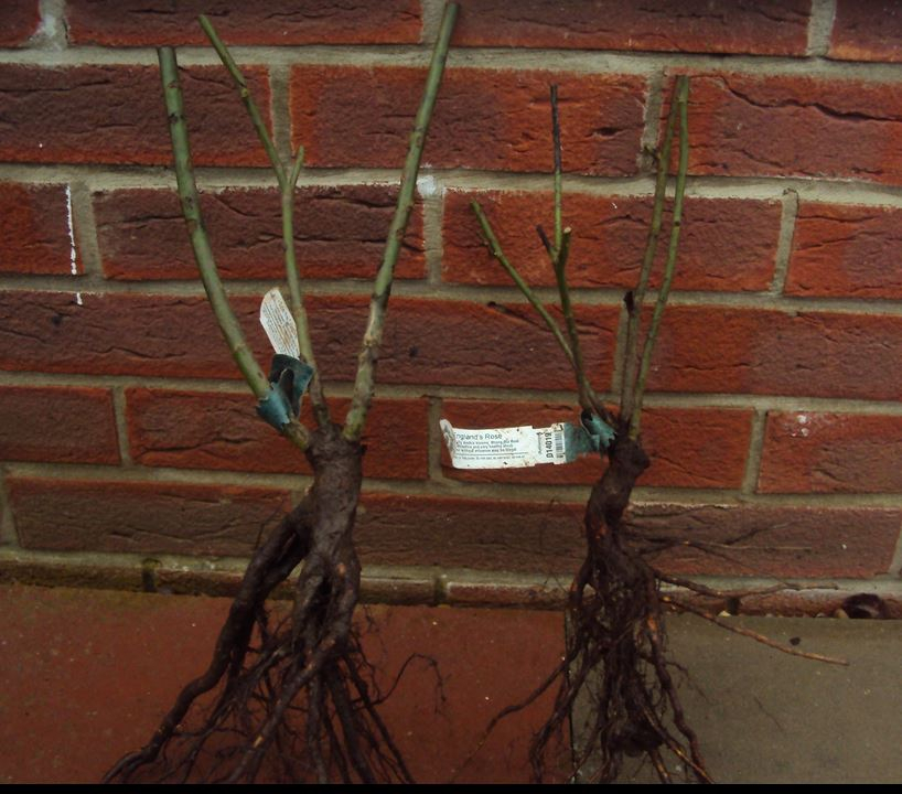 ...two nice roses came today from David Austin.... I've put them in a bucket of water overnight and will plant tomorrow weather permitting... Jude the Obscure and England's Rose... I've not grown either of these before but I've heard quite a lot about them.. 'ER' looks a bit puny compared with Jude on the left...