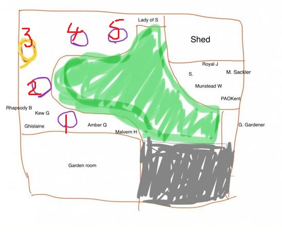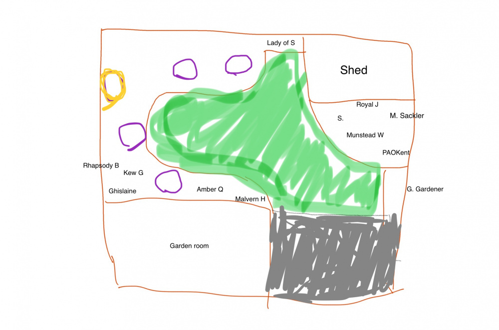 Haha! Apologies for the crude iPad drawing! Meant to be my garden but not at all to scale. I’ve marked the position of other roses with the names, the circles are showing possible spots for roses to go.