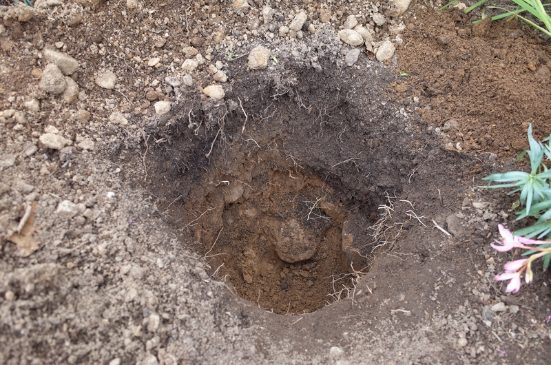 Which is 90cmx3.5m up to the bags of manure. This is about a third of the area of my new rose bed, which has taken me 5 days so far to dig. Why is it that the amount of rocks coming out seems to be at least twice the volume of the space they come out of? A mathematical mystery!