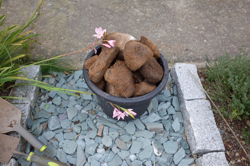 But they seem happy growing in it. One problem I’ve got now is that I swapped fresh soil with a transplanted rose’s in one of the areas where I’m now planning to plant a rose! So I’ll have to do some more shuffling.