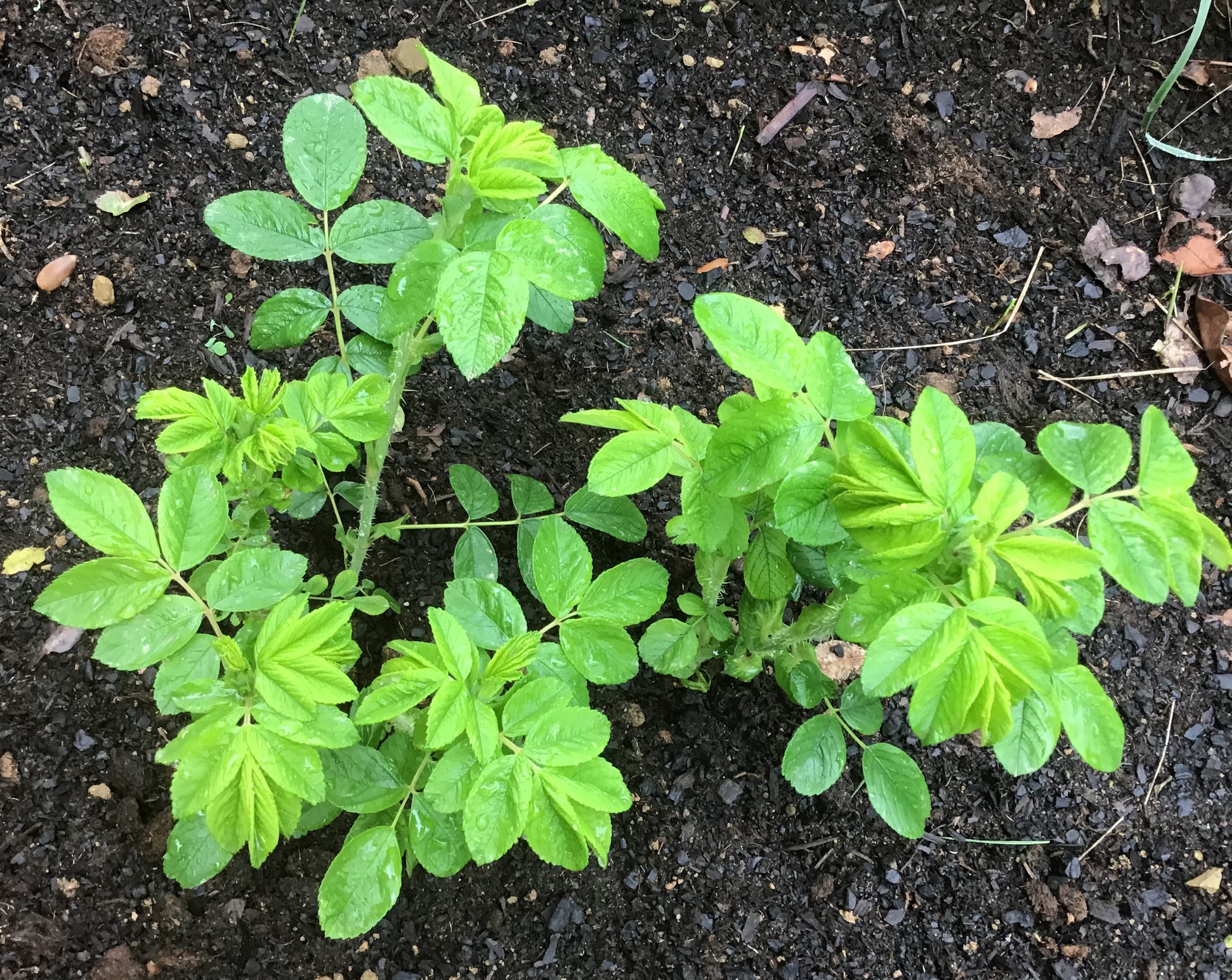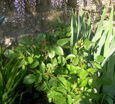 This is the exception, Rosa Rugosa Hansa hasn’t budded yet, but its settling into a new location which I hope will suit it better. It suffered a lot of cane dieback last year. I like the bright lime green foliage: