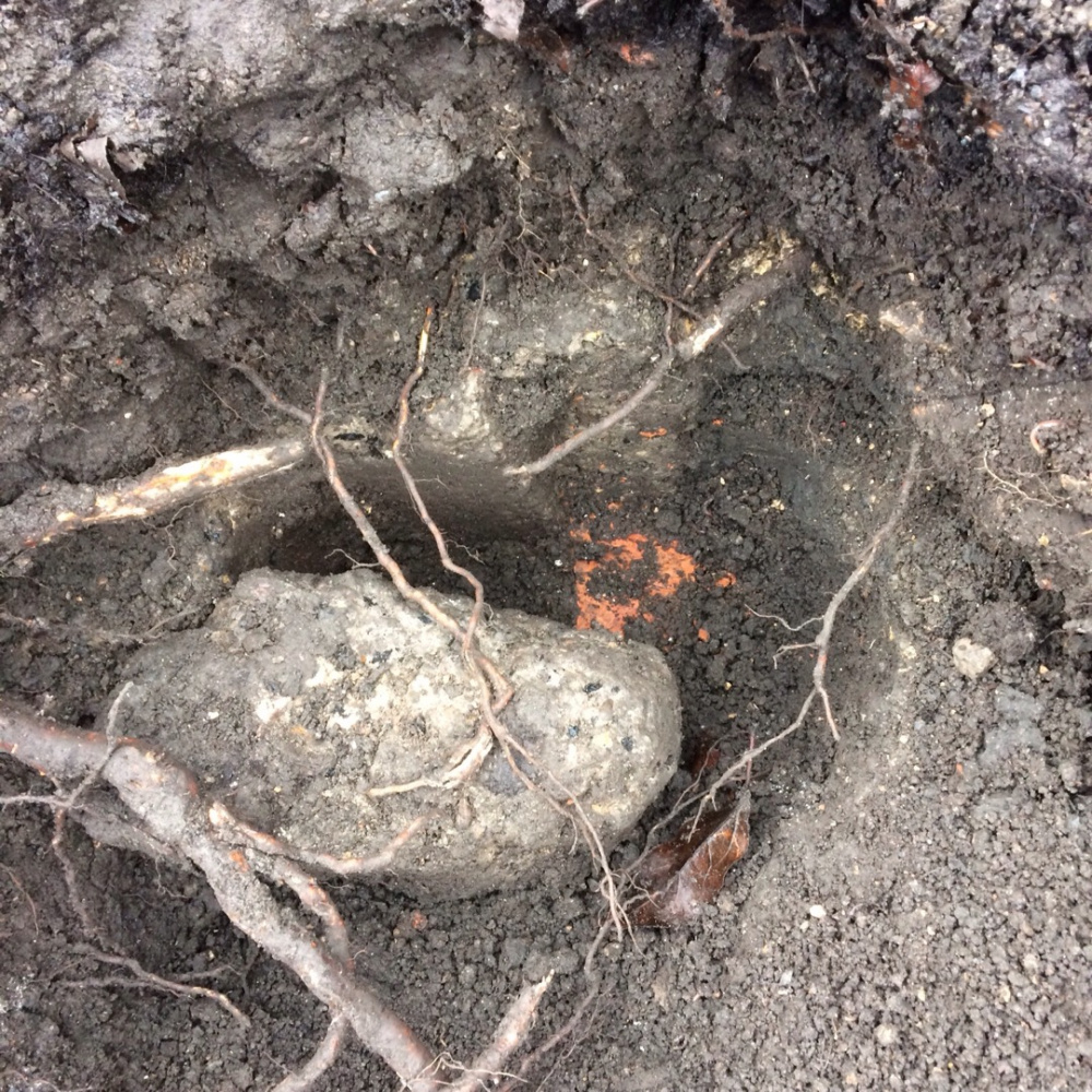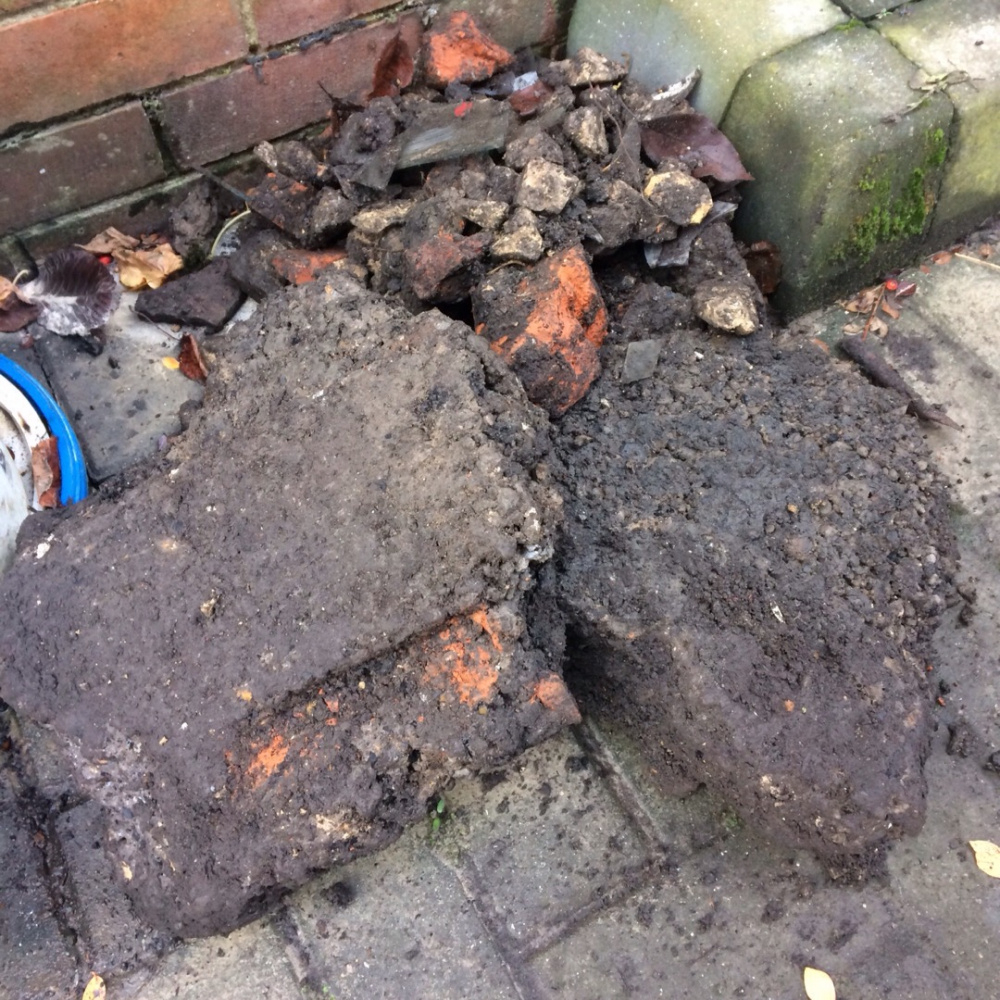 I can't beat Nollie's bedrock, but I think I can compete for ugliest rubble. I intended to bury the contents of my kitchen caddy in this area I have put aside for a new rose but straight away the fork hit this mess: