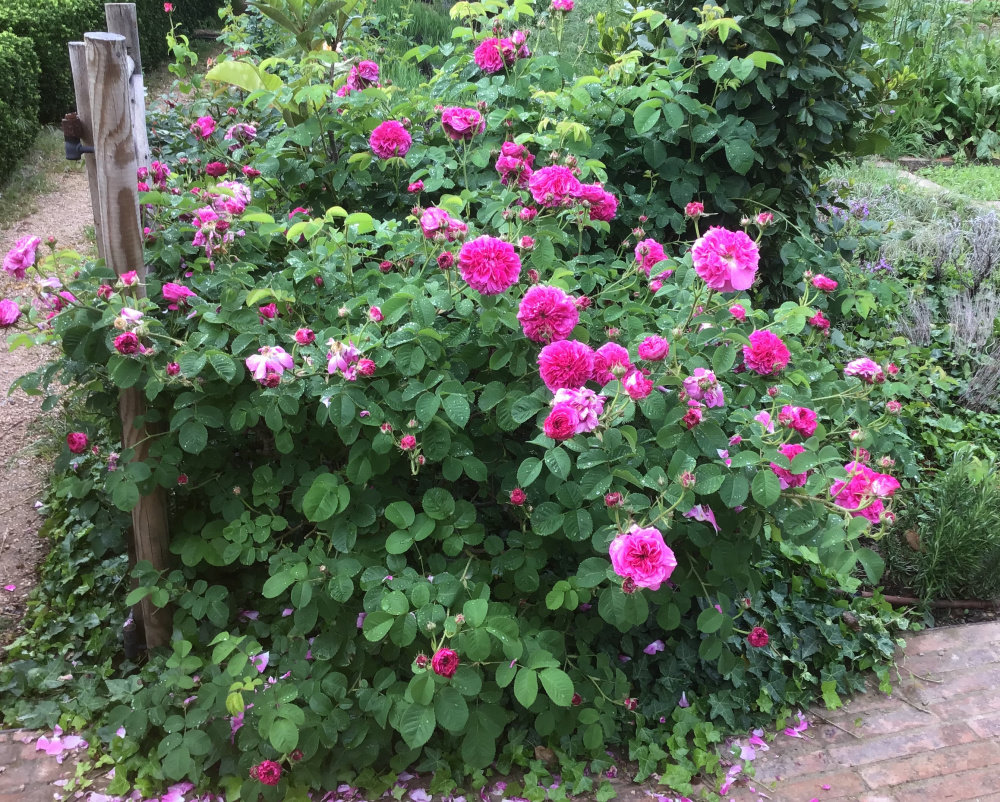 This beautiful rose bush in full bloom was in the garden of a hotel we stayed in last night (much milder climate than mine, near the coast). So lovely to see something other than a hybrid tea grown here. I have difficulty smelling most roses, but this was divine! I thought it may be Mme. Issac Pereire. @Marlorena or anyone else could you please ID it for me? Many thanks...