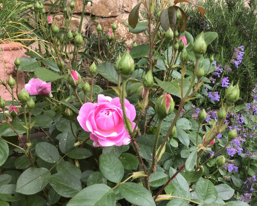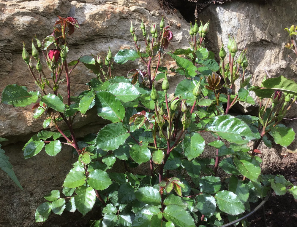 Sorry, I do seem to be hogging this thread, due to being a bit ahead, climate-wise. Not bloomed yet, but my new Wild Rover is covered in buds and I’m really looking forward to this one bursting forth. It seems very vigorous given it was a late bare root planting this year. As you can see, we had some rain then the sun came out: