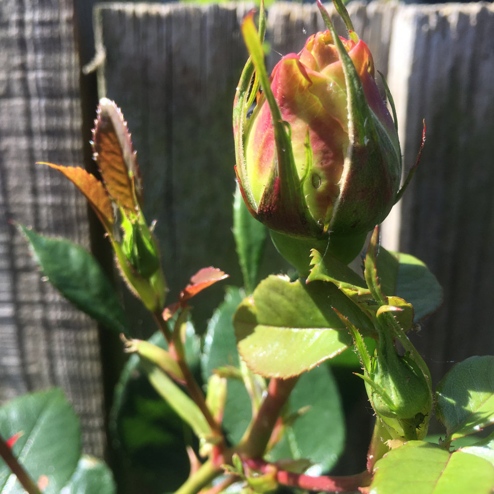 @Marlorena these are the buds of what might be a Niphetos (Historical Rose Soc diagnosis). Beautiful harlequin stripe, though it opens to be the most delicate cream. I think that in all probability it is not Niphetos as it's too tough and thriving with no help from me at all. I inherited it eight years ago with the house.