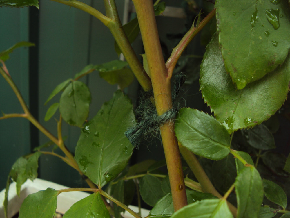 ..this green cane, the nearest one, was growing outwards horizontally towards me.. I've managed to turn it upwards and tie it in.. see next photo..