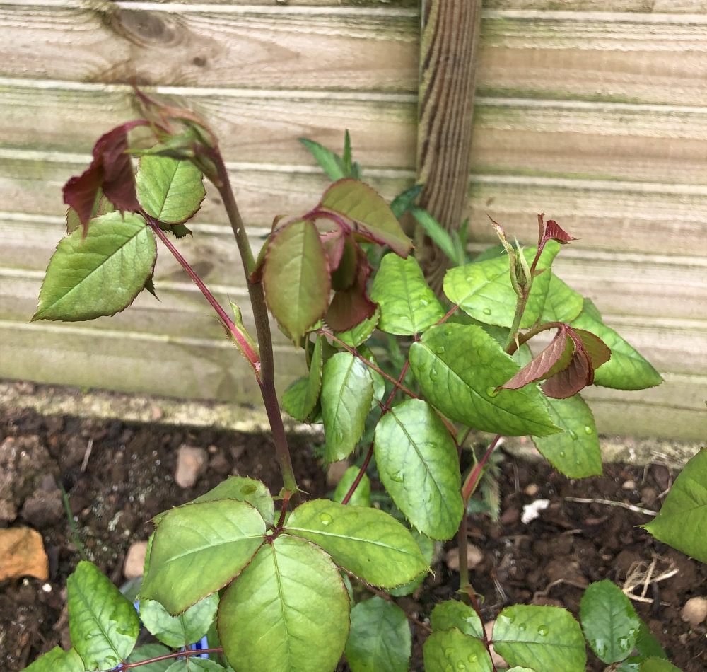 @Marlorena I got a bare root Dizzy Heights last winter. It is putting on decent growth, however it appears that what looks like will be a leading cane is growing towards the path, instead of towards the support.