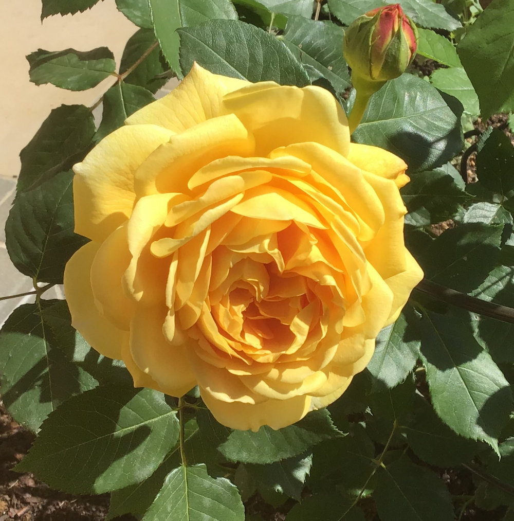 @Nanniemo .. your rose is 'Golden Celebration'... @Nollie .. aah ok, as it was bought in Spain, I wouldn't attempt an i.d. but it's a pretty rose...