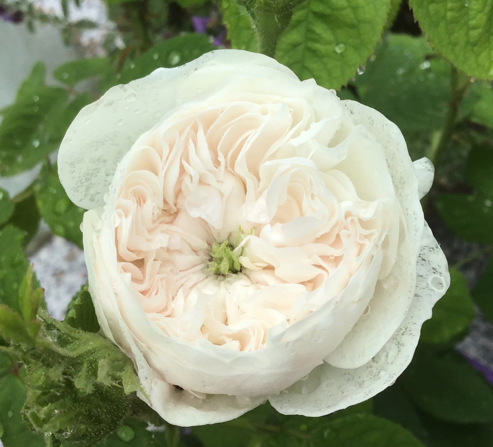 A bit rain battered, but here is my first bloom of three new Mme. Hardys. Plus, I can actually smell it - hurrah!