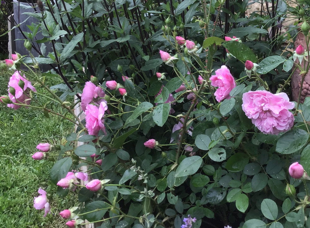 I regretted Pilgrim, because it was was so tightly packed and those 'triple' roses look fake to me. I moved it after two years in and replaced it with Guinee and EdH. Also I got a Little Arthur Bell from a rose show - more as a memento of the show than because I had anywhere good to put him. I gave him to a friend who loves him. He loves her too - and is romping away.