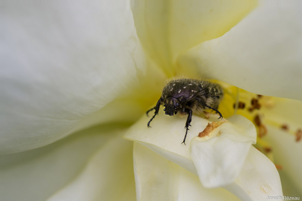 Hi @Nollie , you're not alone! Just spotted this "lovely" Oxythyrea funesta half asleep in the heart of one of my rose flower carpet Yellow Sunshine (aka Rosa 'Noason' 'Celina').