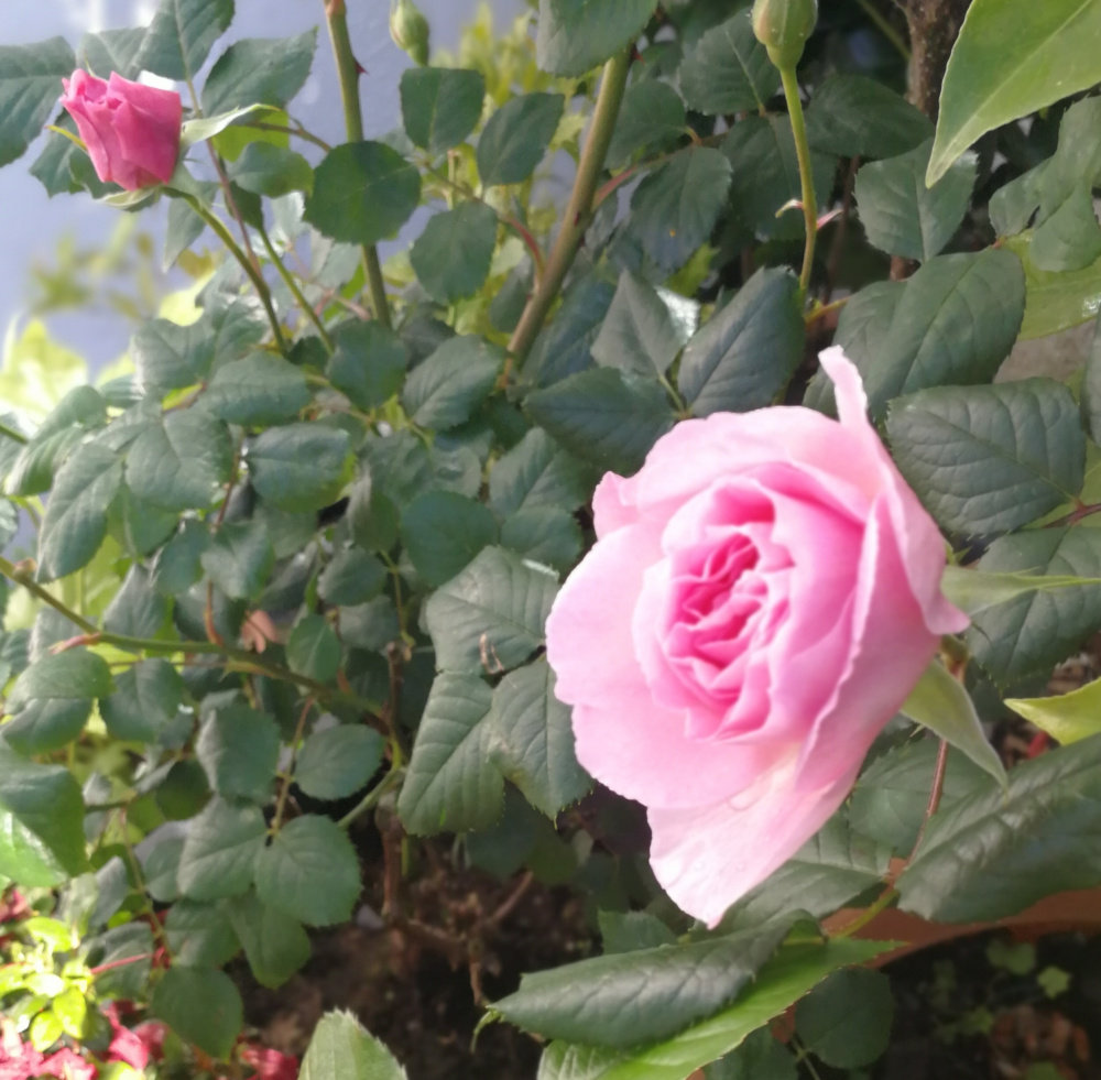 first bloom on ancient mariner. I'd forgotten how good this rose smellsbud and bloom on susie.. Also gorgeous scent but much more citrussy Margaret fully open a 2ndsummer sweetheart in full swing at the top for some reason