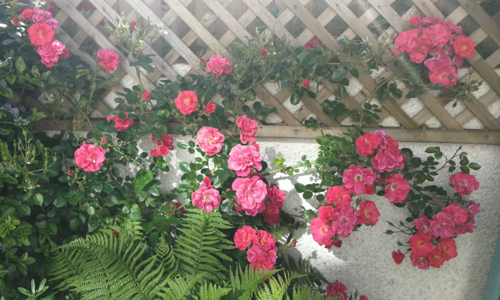 I photographed this rose at my neighbour's house yesterday. She didn't know the name - can you help to name it please? As you can see it was perfect, climbing up a trellis - I think a climber rather than a rambler.