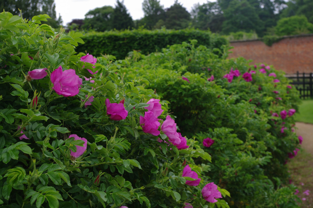 Elsham Hall and country park today. Lots of roses out and a wonderful deep pink Rugosa hedge that went all the way around the inner circle of the walled garden. Masses of single flowers and covered in bees.
