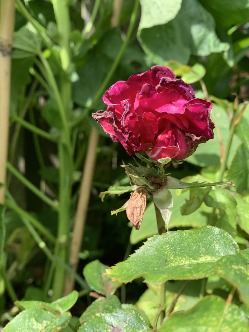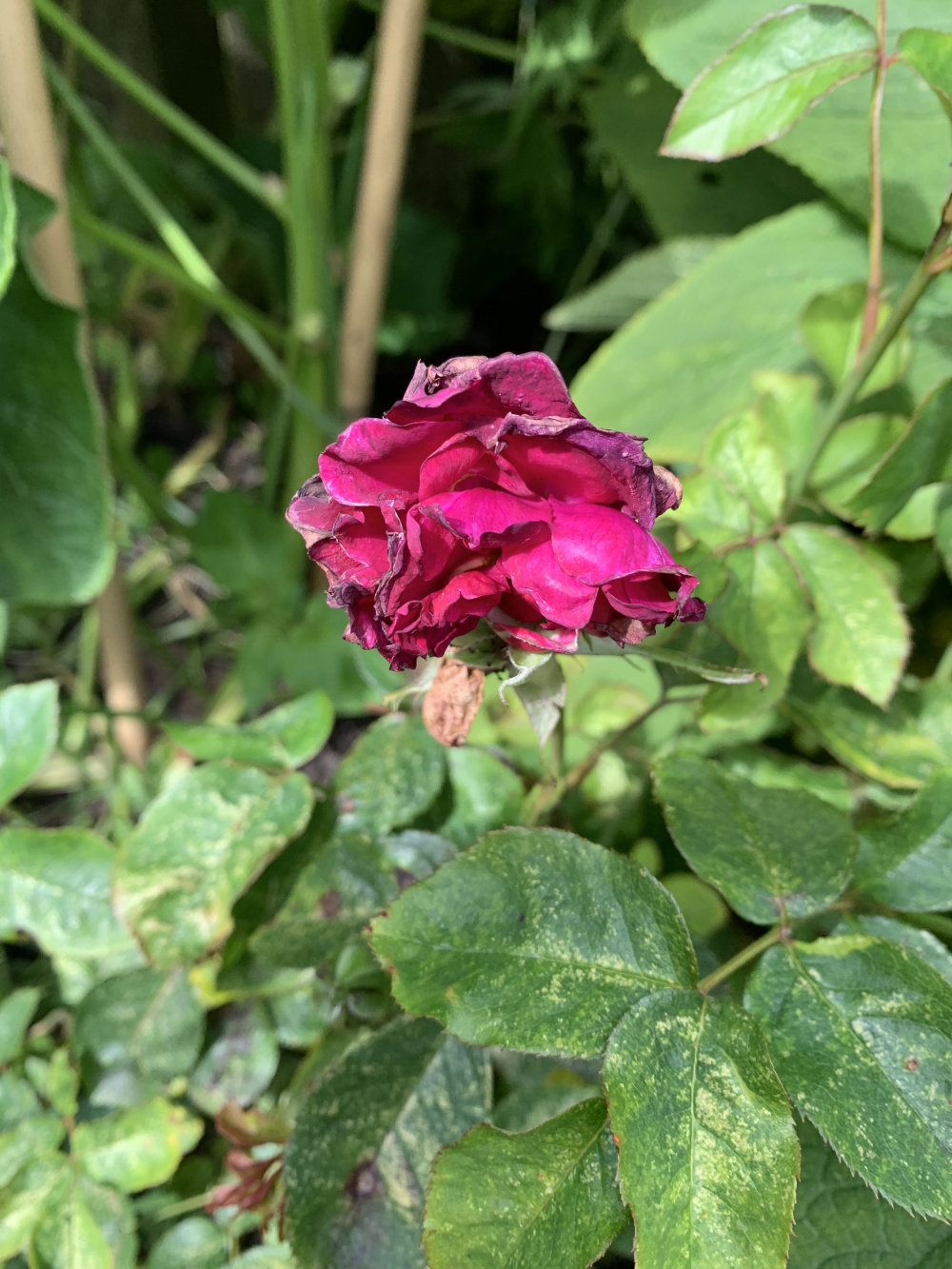 @Jason-3 It's for several reasons. First is my personal preference, I don't like her in official photos and of course, my reality is worse. But the main reason is that it doesn't do well for me (North Wales, coastal, wet and windy, sandy soil). Last year it was significantly weakened by drought and blackspot. All roses got manure, mulch, feeding and a lot of TLC since then, most of them are responding well and putting on a lot of new growth. But not GJ. I think deep in its genes, it is fundamentally still an old, once flowering rose (it also repeats badly). So it has half of its leaves damaged by wind, the other half by aphids, it is a small plant (50x40cm, really not more and only two okish canes), but it puts all its energy into the first flush (11 buds! on a plant so small and weak!). I want new leaves and most importantly new basal growth but this rose wants to flower first. I guess growing is planned for later but by then, it will be blackspot season and it will get diseased again. And year by year, it gets weaker. I still hope it will get better later in the season but at this point, it is a really ugly looking plant.