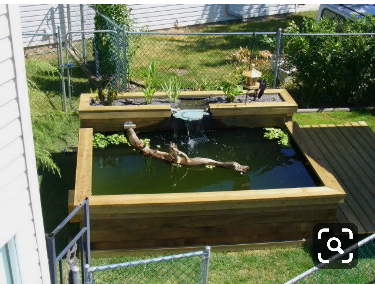 I am building a raised pond and will be building a planter with waterfall on the back of it (similar to the photo). My idea is to have that whole planter as the reservoir for the waterfall into the main pond, with the water being pumped on to a pebble bed, running into the planter which I hope to have some nice plants in gravel.