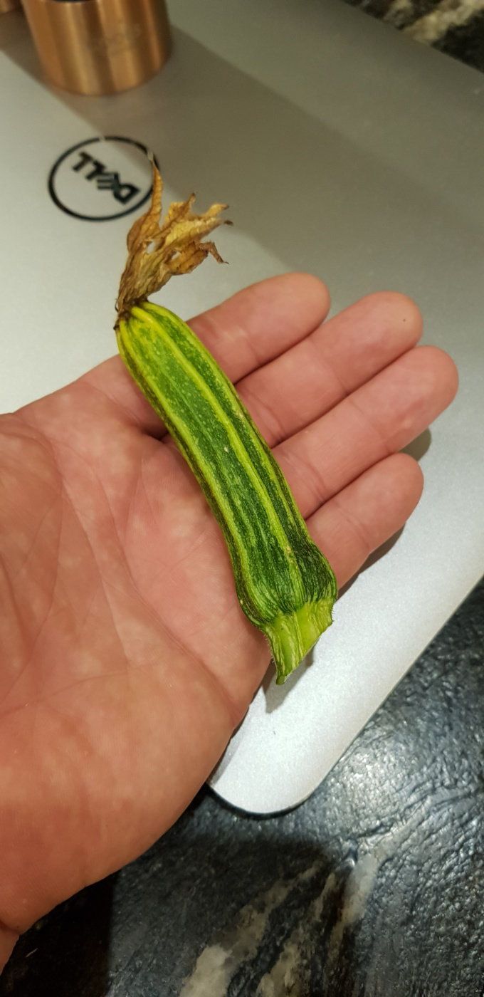 That one looks fine ... it looks like a Courgette ‘Romanesco’ ... the sort I grew last year and am growing again this year. Great flavour and texture. You can pick them from ‘finger size’ upwards to small marrow size, although if you leave them to get that large it does discourage the plant from making new ones, so I try not to do that until it’s getting towards the end of the season. However the leafy growth on the plants can be so lush that you sometimes find a courgette lurking underneath and growing into a marrow!