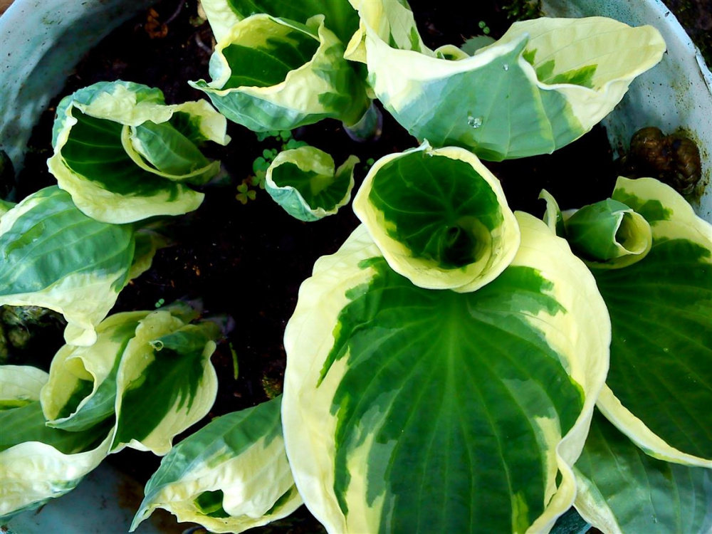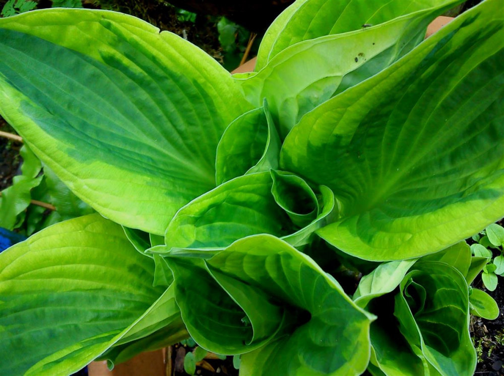 Hosta 'Patriot',..just opened its foliage,..i looked at this image and thought 'Snail',..went out to check of course,..its a knot of rope which i have made as a handle on the outside lol.