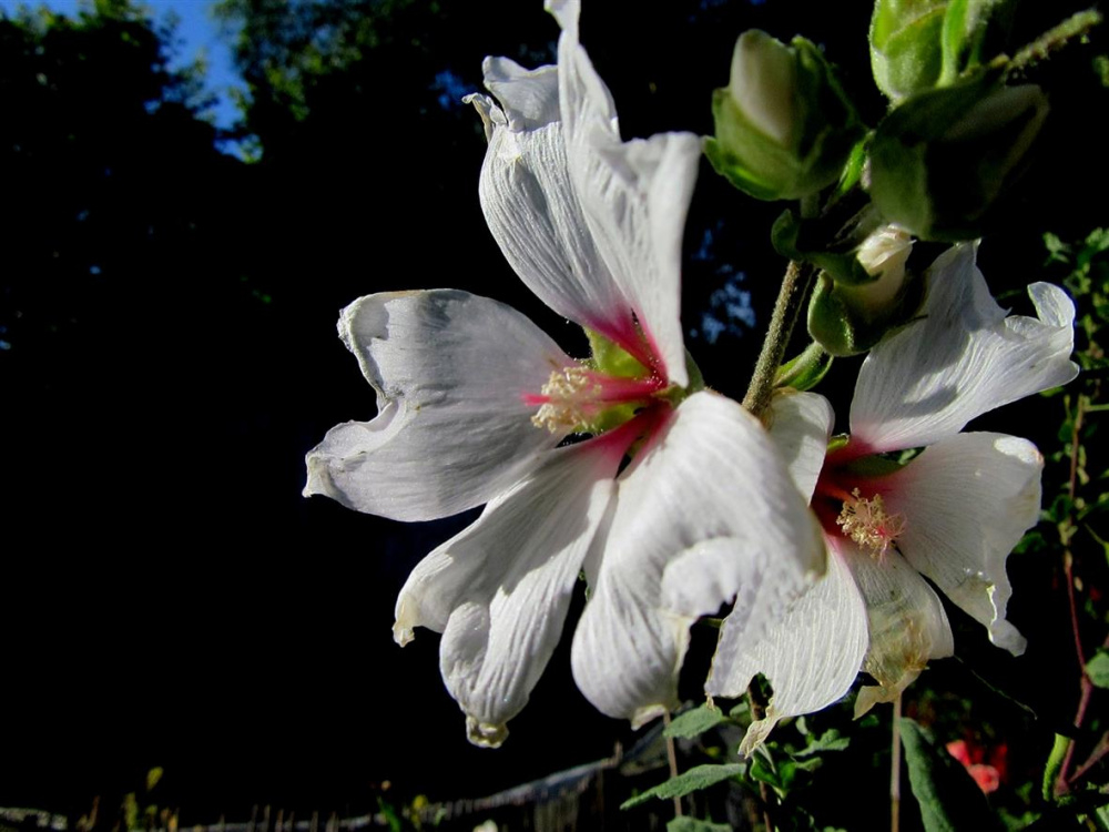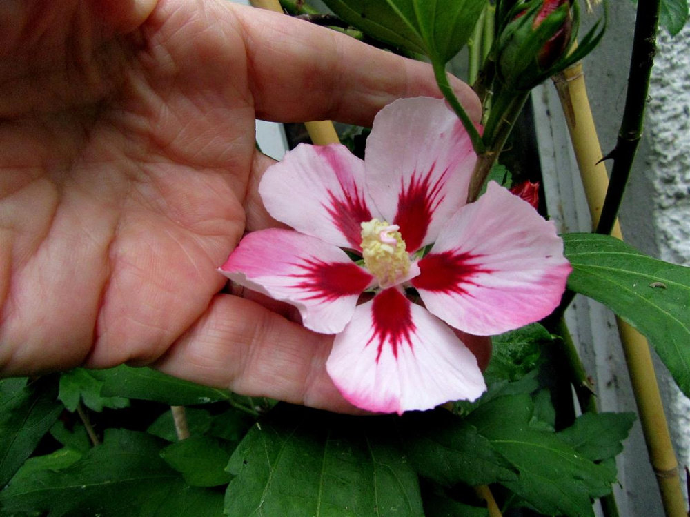 I have 3 Lavatera 'Barnsley Baby',..they are Mallow Family,..i have one facing East and one facing West,..the third is in the middle of the garden and is only a cutting taken last Summer,..the other two are close to a wall in one case the other close to the fence,..i keep them well watered as i noticed they like water often,..i prune mine from time to time to prevent then from getting leggy,..i fertilise them every 14 days along with the remainder of the garden.