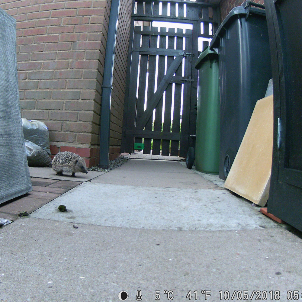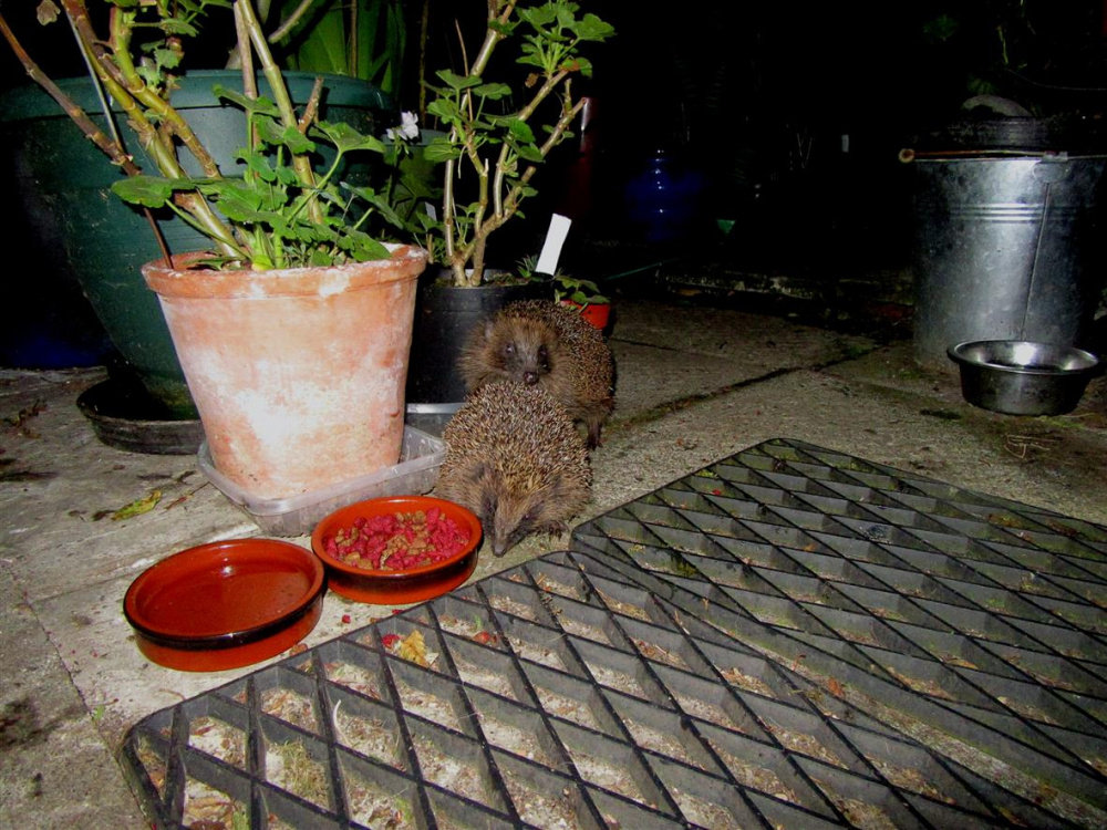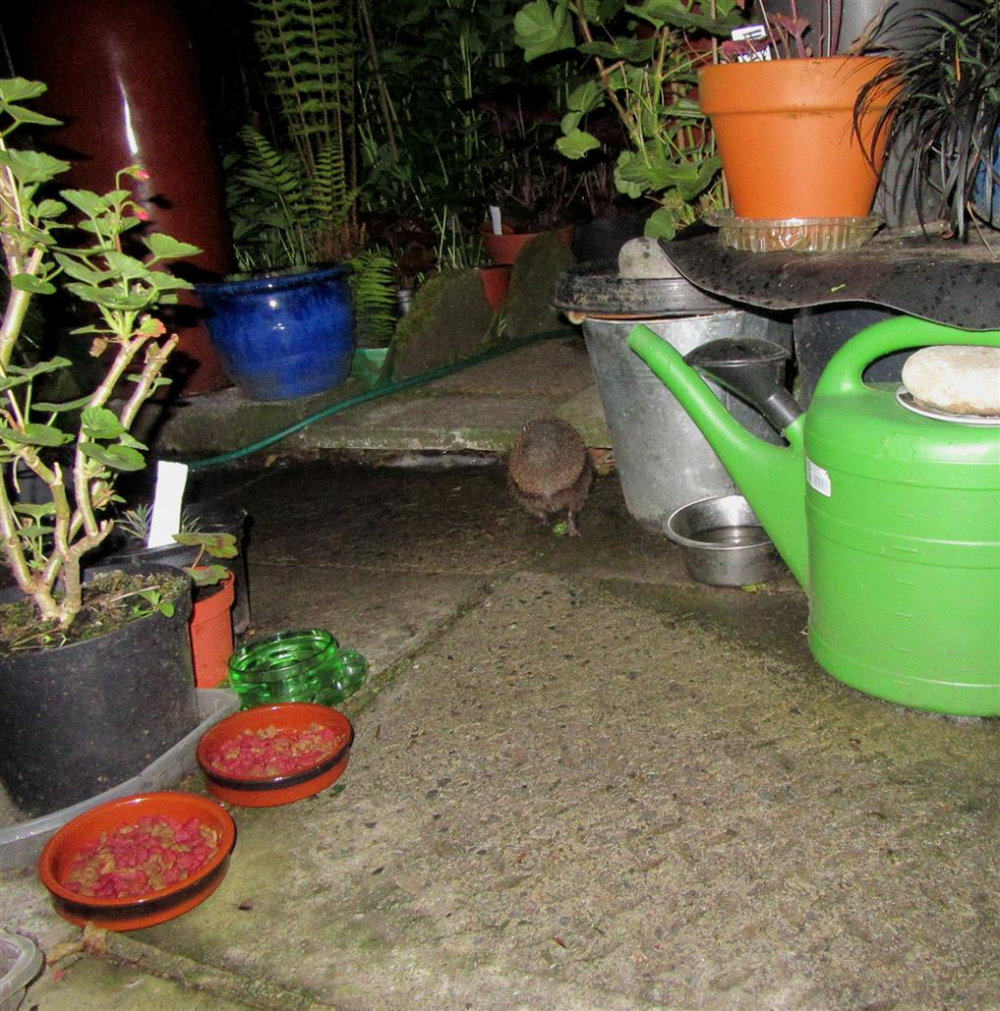 I had a look out to see were there any Hedgehogs feeding,..there was one,..a big adult,.. but by the time i took the camera battery out of the charger the Hog was heading off,..just managed a shot of his blind spot,..the rest of them will be back later.