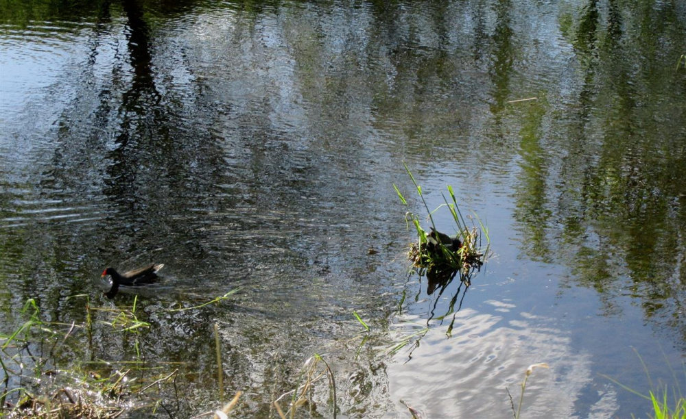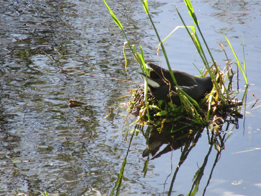 I knew that Water Hen had built her nest too early as i also knew the nest would be high and dry when the water dropped,..i am sure its the same bird who builds her nest in that same spot each year,..i spotted her with her OH below.