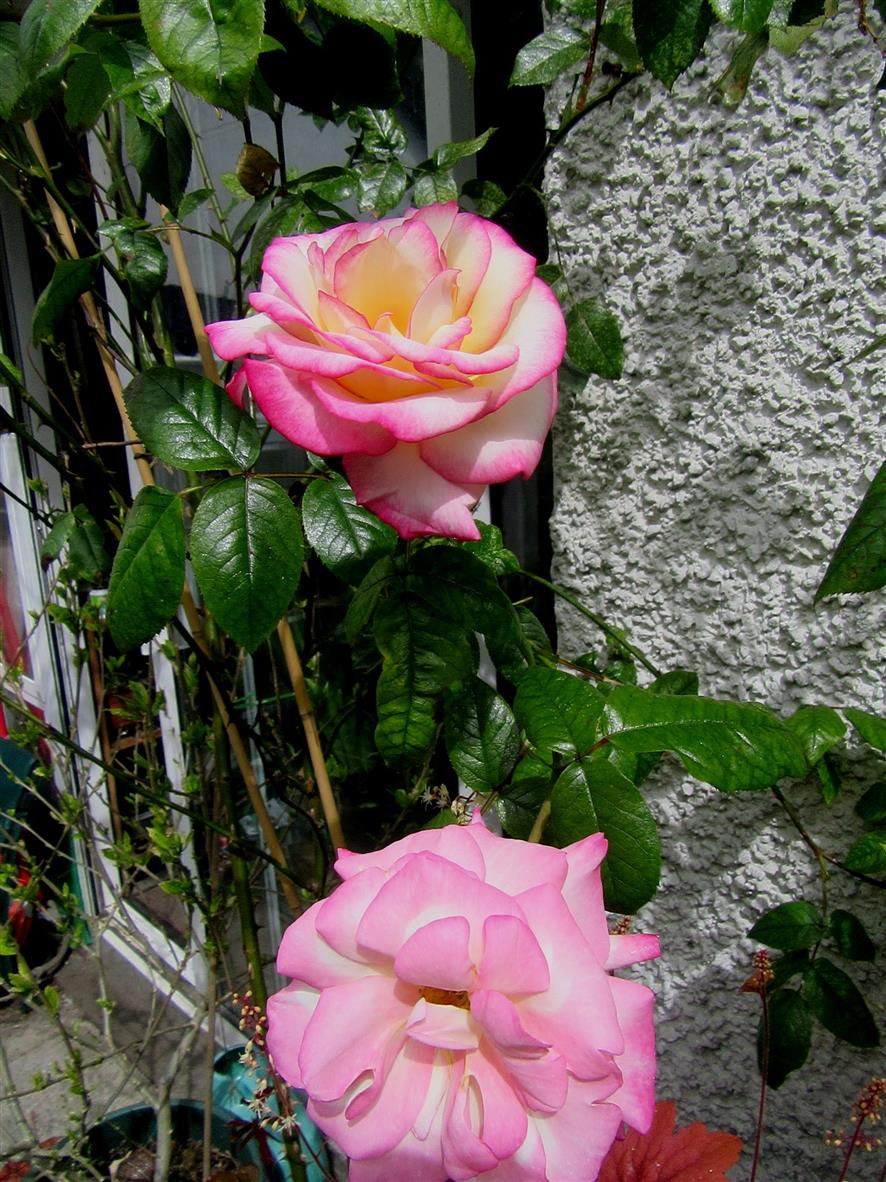 Rosa ( Rose 'Handel'),..growing over my back door.