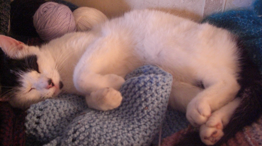 Lovely pics Islander! That kitty landed on his feet! He looks so contented,glad to have a secure home now. Nice knitting too! Well spotted Philip!