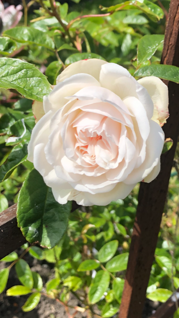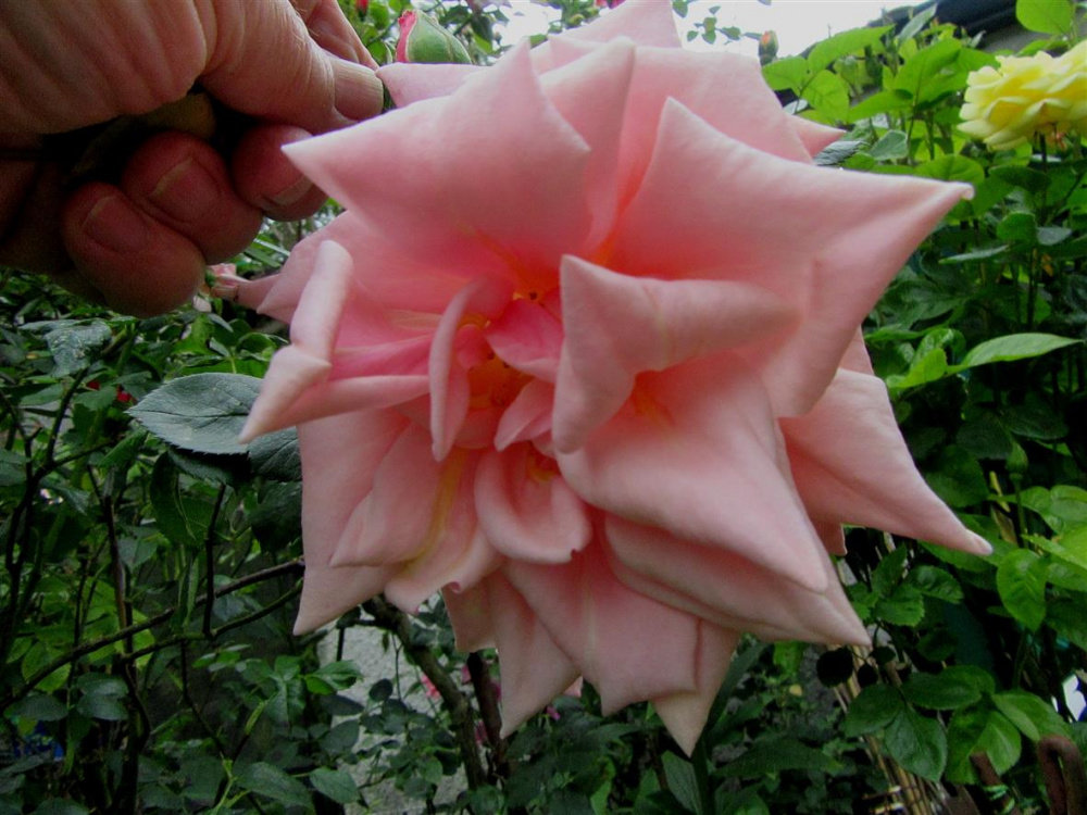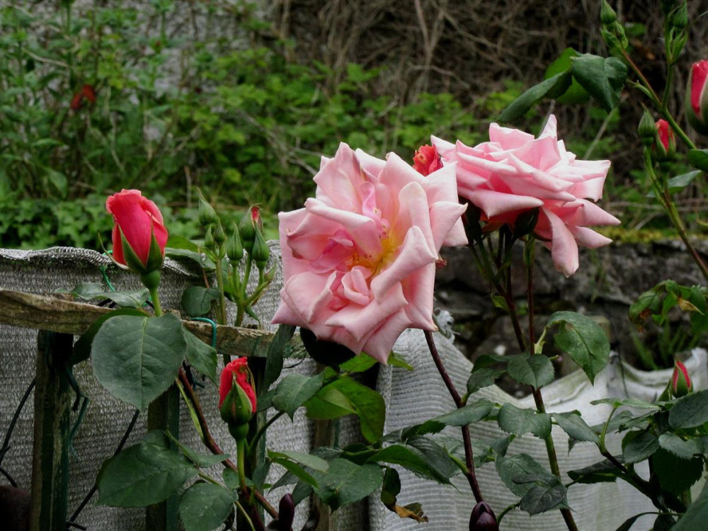 I have a mystery rose at the end of the garden,..as far as i was concerned this way a cutting from a Dog Rose,..the following season which was 2018 this bush produced two different type of blooms,..neither looked like the Dog Rose,..i checked the base and yes there were two stems attached which explained the two different type blooms but i have no idea what the changes were from a Dog Rose Cutting,..anyway i looked at it today and its a Rambling Rose beyond a doubt as it has rambled about 2 Metres=6 Ft along a wire fence,..entwined itself very well,..there are at least 200 rose buds on this bush so it should put on a good display soon,..@granma named it Rosa ( 'Peachy Sorbet Melt' ).