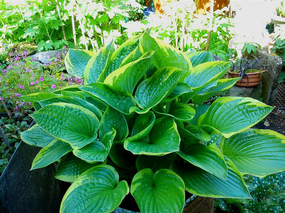 A nice big Hosta Fortuari aureomarginata.