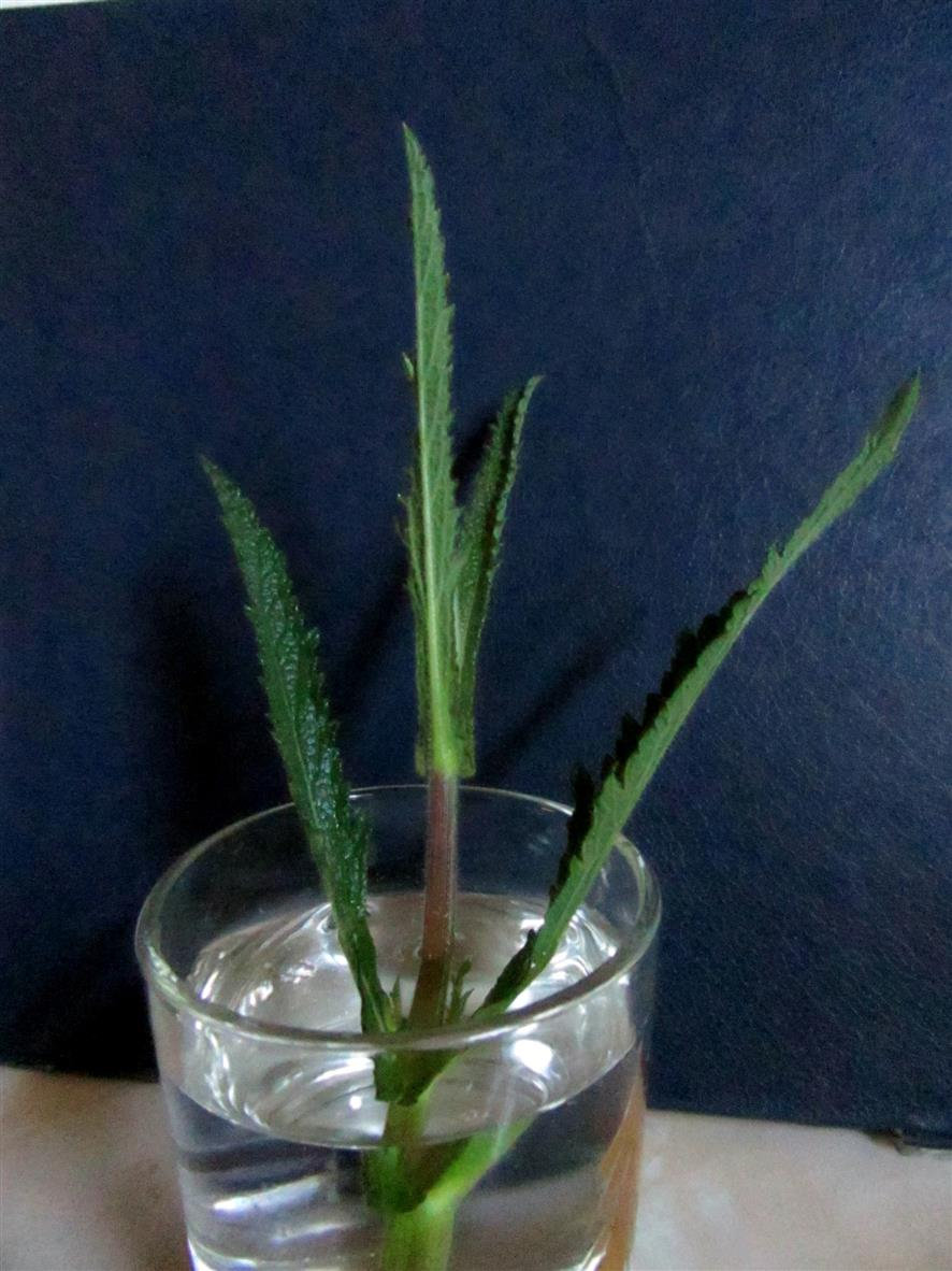 On the 12th of May i was at the hardware store and before i went in i noticed a piece of a plant,..10 Cm = 4 inches long,.. so i was careful not to drop something into my trolley to damage it,..took it home and left it in a glass of water for 24 hours,..as below.